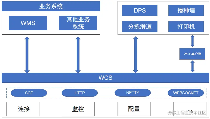 WMS系统主要聚焦的是业务相关的流程中,属于软件层的BS架构系统;但是引入自动化硬件势必需要和硬件层打交道,那这就需要有对接和控制硬件的系统;参考行业标准,因此我们引入了设备控制系统,简称WCS(后文用此称呼)。