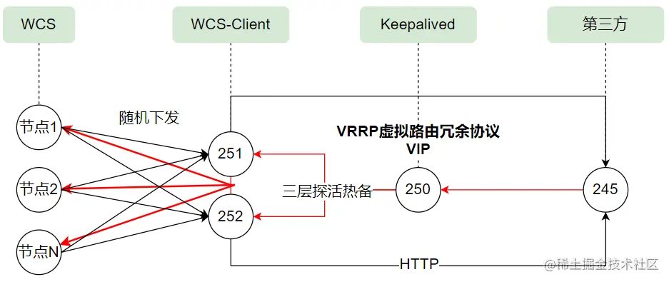 - WebSocket客户端热备;部分场景下,长连接客户端需要保持高可用;故针对这类场景采取的做法是,将本地的两台物理机通过Keepalived实现多机热备,并提供VIP对外提供服务;流程如下图: