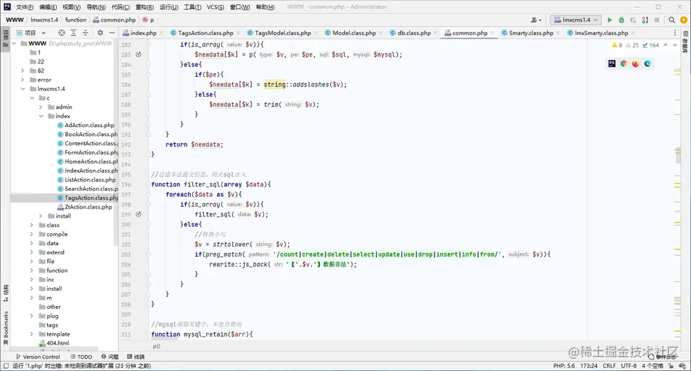 发现是空白,连报错都没有,其实仔细看之前common.php里,有filter_sql方法