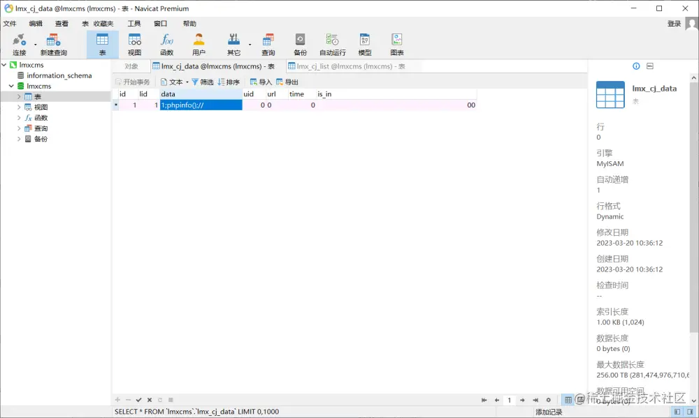 可以看出执行了sql语句,通过跟进ci_data_tab发现