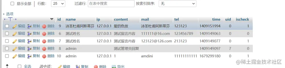 可以看出这个ischeck是判断是否显示在前台的,那么我们进行注入,把ischeck修改为1就可以回显在前端了