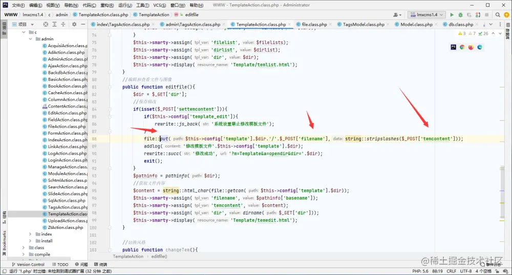 lmxcms1.4/admin.php?m=Template&a=editfile