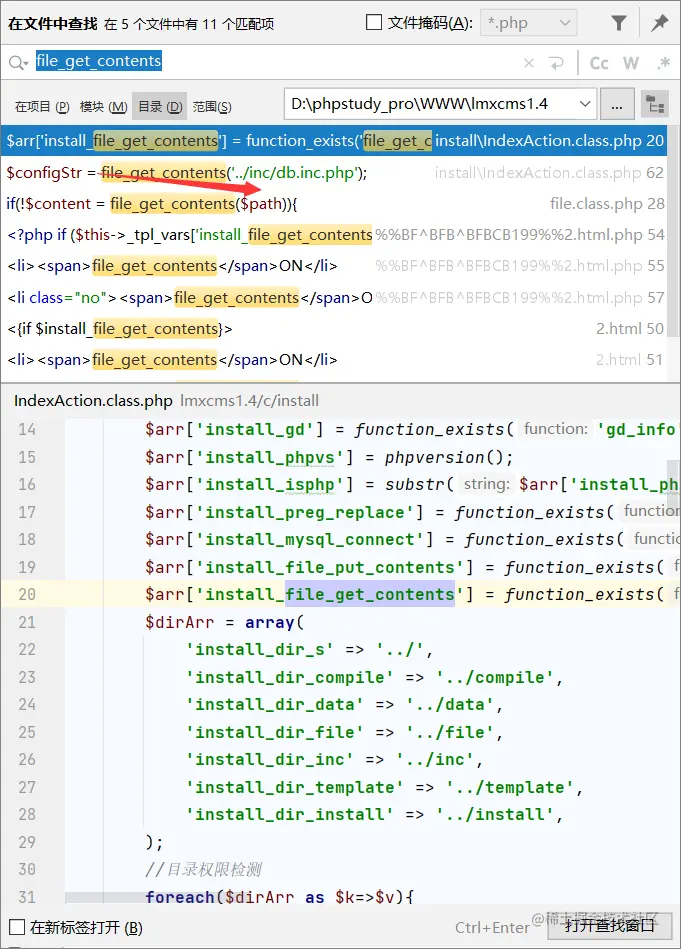 文件读取函数freadfopenfilefile_get_contents搜索file_get_contents然后找file_get_contents函数和参数代码段,