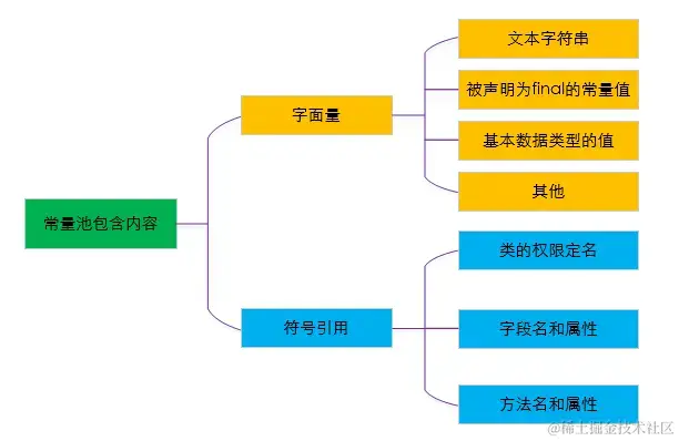 运行时常量池(Run-Time Constant Pool)是方法区的一部分,.Class文件中除了有类的版本、字段、方法、接口等描述信息外,还有一项信息是常量池(Constant Pool Table),用于存放编译期生成的各种字面量和符号引用(图4所示),这部分内容将在类加载后进入方法区的运行时常量池中存放。