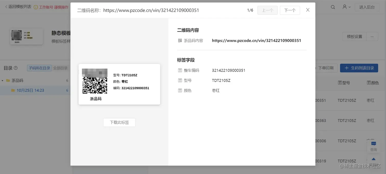 点击子码的二维码名称,可预览浙品码标签样式,扫码确认效果
