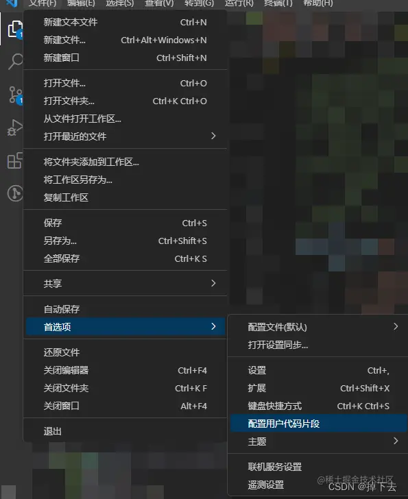 【菜单选项】文件 - 首选项 - 配置用户代码片段