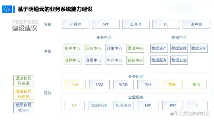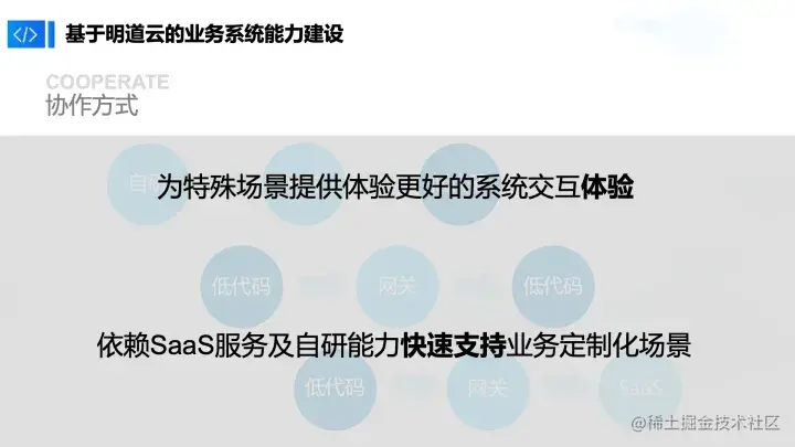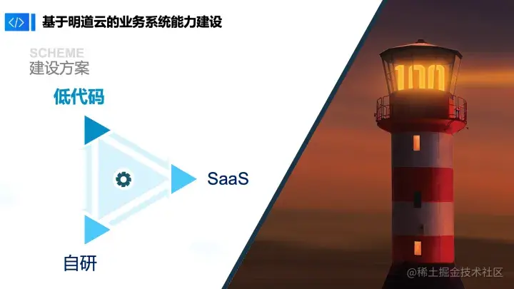 我们总结了3种自研方式,一种是自研+网关+低代码,其实网关代表自研的一种衔接方式,第二种是低代码+网关+低代码,第三种是低代码+网关+SaaS。