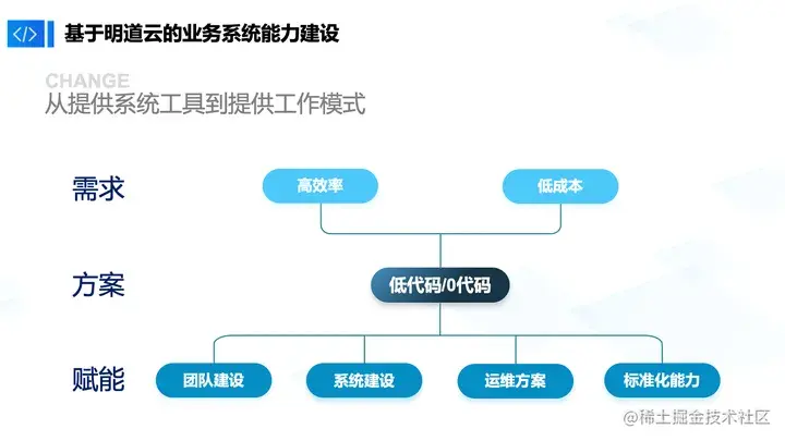 至于赋能,我觉得不只是工具层面的赋能。低代码平台其实是一个革命者,它颠覆了传统的开发逻辑,我们希望从整个公司的运营环境下去考虑低代码对公司的发展或者迭代有什么样的助力。