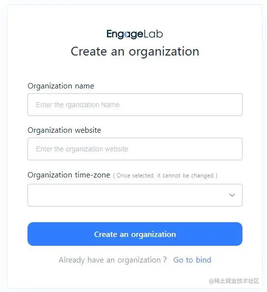 4. 连接账号:输入已有Engagelab账号,或创建一个新的Engagelab账号;创建一个组织,或绑定了账号已有的组织;绑定成功,返回EDM。