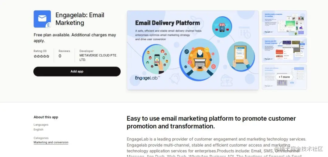 1. 在shopify的应用商店中找到Engagelab: Email Marketing或访问apps.shopify.com/engagelab-e…