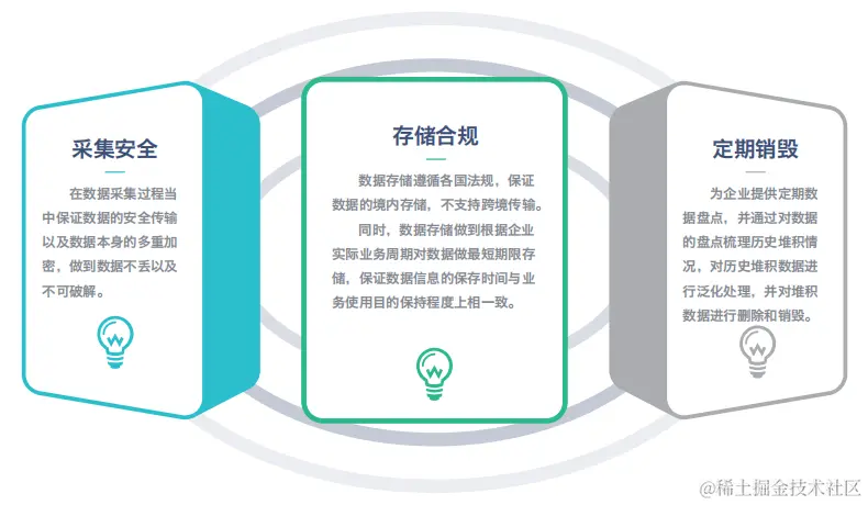 企业数据合规化是企业数据治理的核心和红线,企业对于数据的收集和使用需要按照国家《数据安全法》《个人信息保护法》,海外按照欧盟 GDPR 为代表的各属地法律法规进行。对于涉及公民隐私等相关数据务必进行安全与合规化的管理和控制。