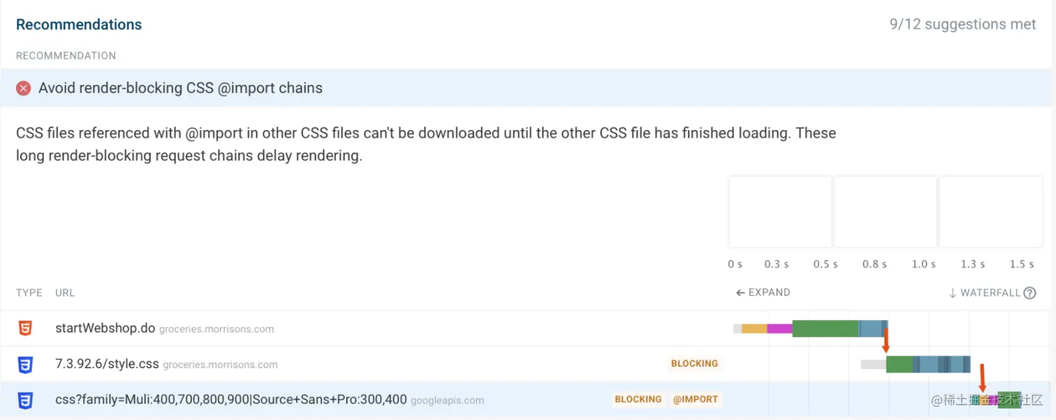例如,在CSS文件中导入Google Fonts时经常会发生这种情况。