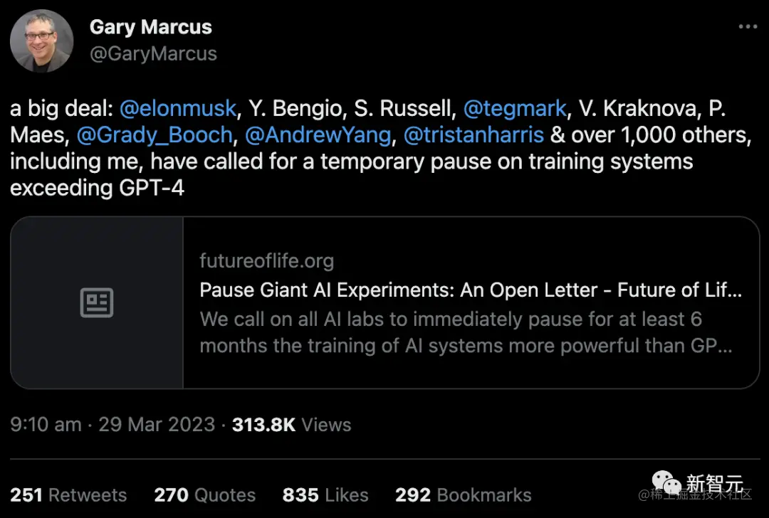 在这封联名信上,超过 1000 位大佬呼吁——我们应该立即停止训练比 GPT-4 更强大的 AI 系统,暂停期至少 6 个月。