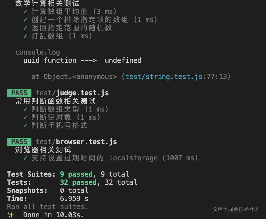 整个测试一共花了10s, 测试全部通过, 各位小伙伴们可以放松食用.