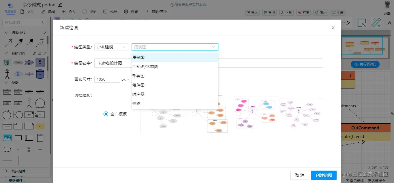 在新建uml图时选择目标模板