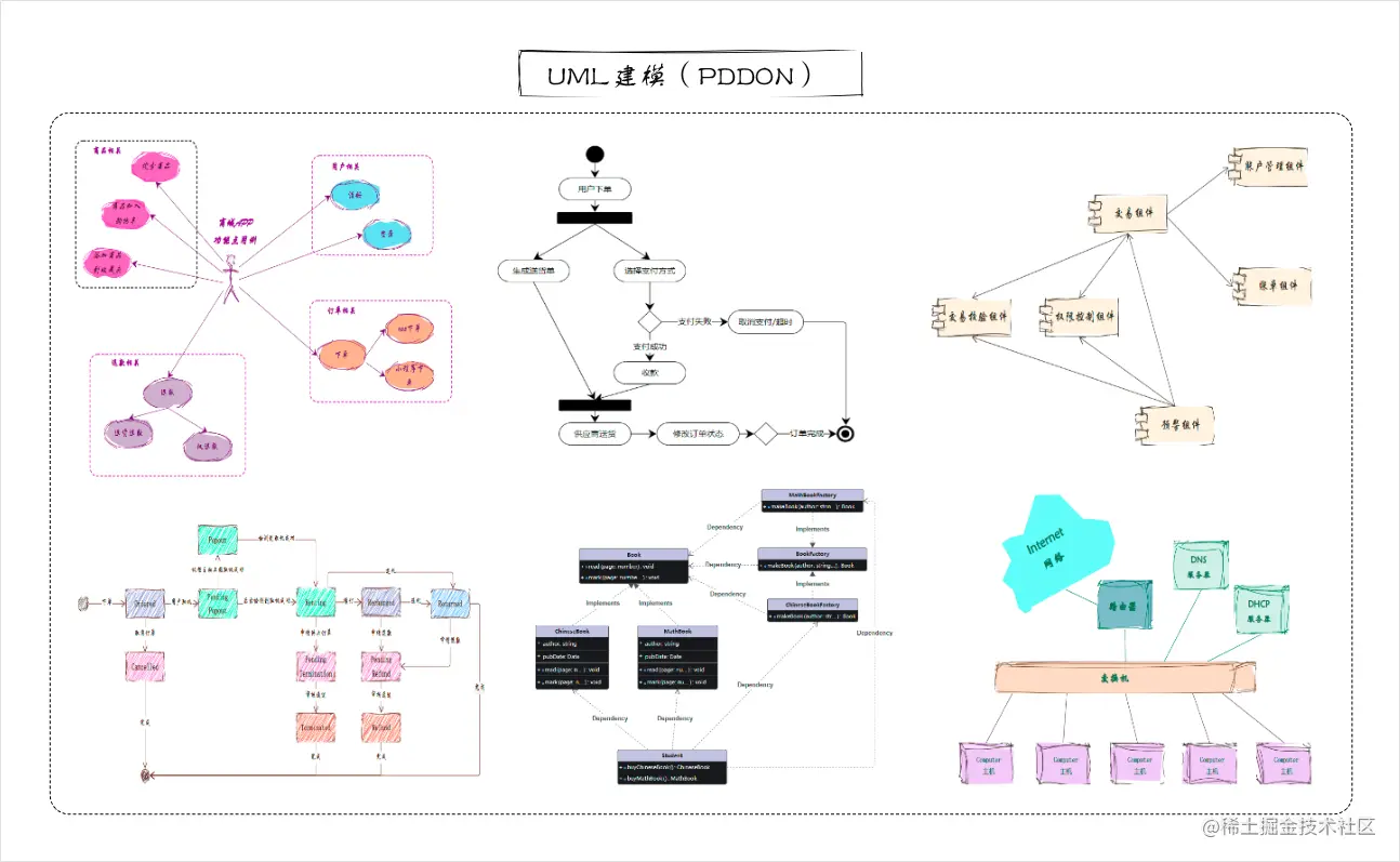 PDDON除了可以用来UML建模,还支持流程图、架构图、思维导图、数据库模型图、鱼骨图、韦恩图、网络拓扑图、自由风格绘图等等一系列绘图,有了PDDON,再也不用担心找不到好用的画图工具了。