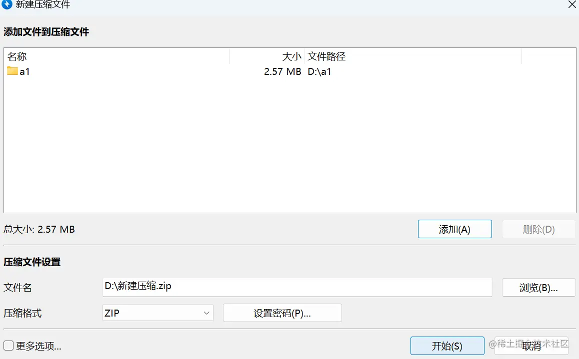 2、添加文件,开始压缩