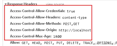 简单请求能直接进入到接口里执行它的内部逻辑,执行完正常返回响应,但如果想要响应的结果被正确接收,就需要在响应头里加上跨域的许可Access-Control-Allow,响应头就是Response Header,关于跨域许可的几个参数有: