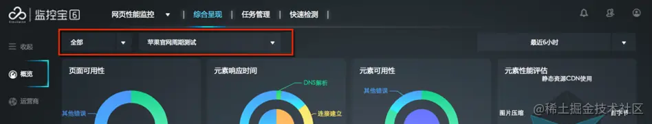 配置入口:网页性能监控>任务管理>目标监控任务>综合呈现>概览