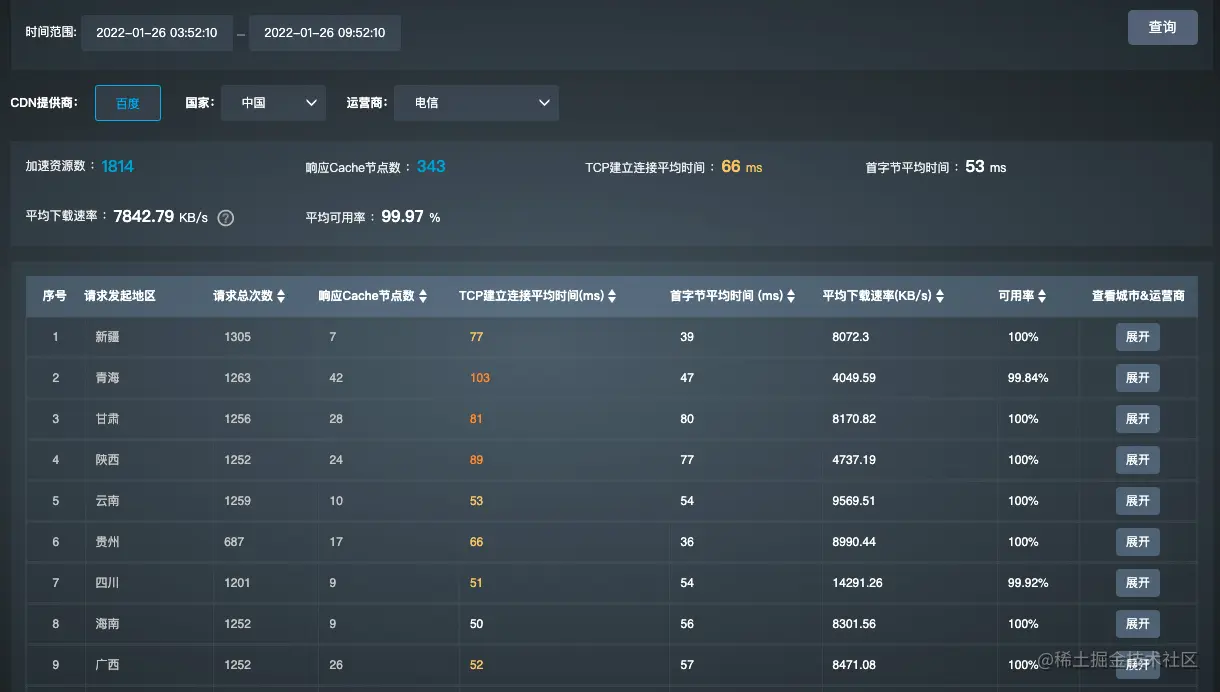 在进行CDN服务商选型时,您可以通过监控宝6完善的数据对比,客观地评估不同服务商在相同应用场景下的性能表现,从而选择更优质的CDN服务商。
