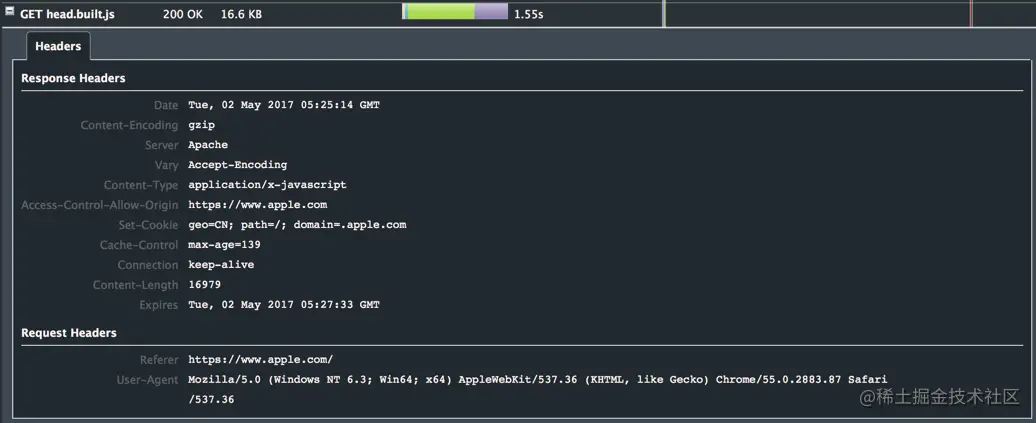 用于评估所有响应200的非HTML的静态资源,检测静态资源是否适当地设置了过期时间,避免客户端浏览器频繁的从服务器重新下载。单击缓存节点静态资源区块查看影响得分即有问题的URL、评估结果和评估原因。
