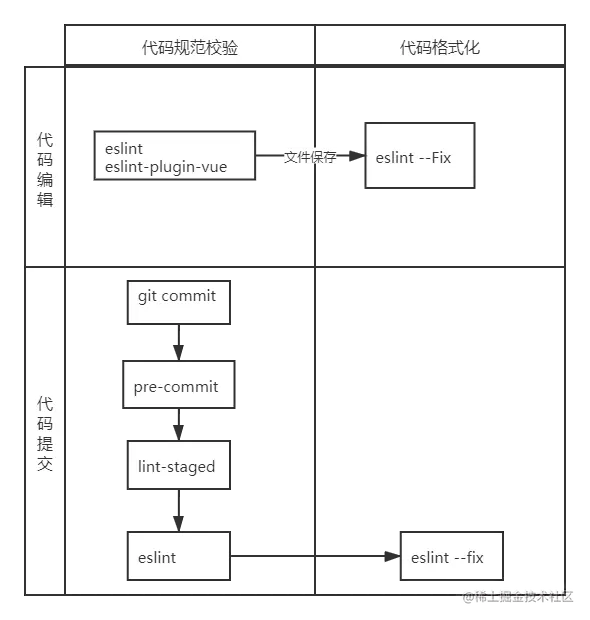 Vscode等编辑器中安装扩展程序,同时以需要依赖eslint依赖包。通过setting.json中配置扩展程序配置如文件改动保存时自动校验并修复等