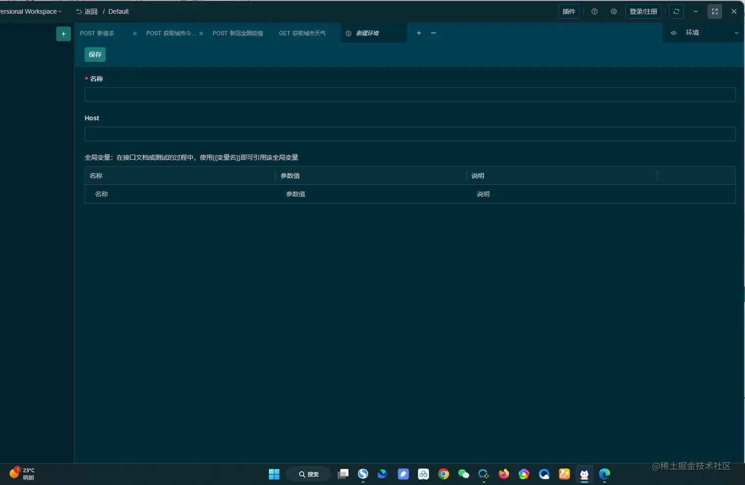 设置 API 的请求地址前缀、全局变量信息。在测试时,可以一键切换测试环境而不需要手动输入域名。