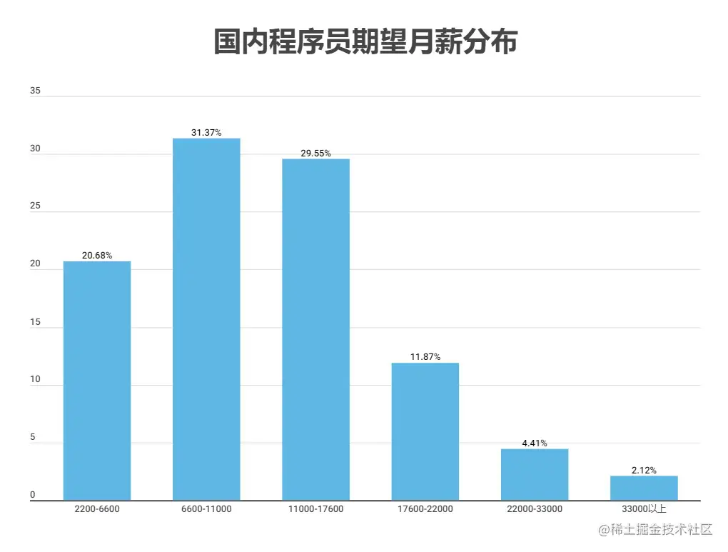 全球程序员平均年薪为 107510 美元,程序员的薪水在很大程度上取决于位置。加利福尼亚州被认为是程序员薪资的最佳地点,年薪为 134370 美元,其次是华盛顿州,平均基本年薪为 73,967 美元。国内来说,60.92%的程序员月薪在6600-17600。