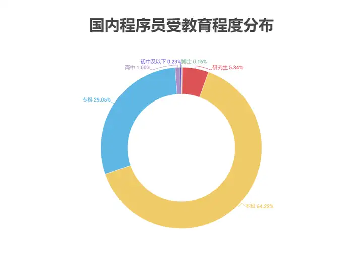 国内程序员,有高等教育经历的程序员占比达98.77%,其中本科占比达64.22%。
