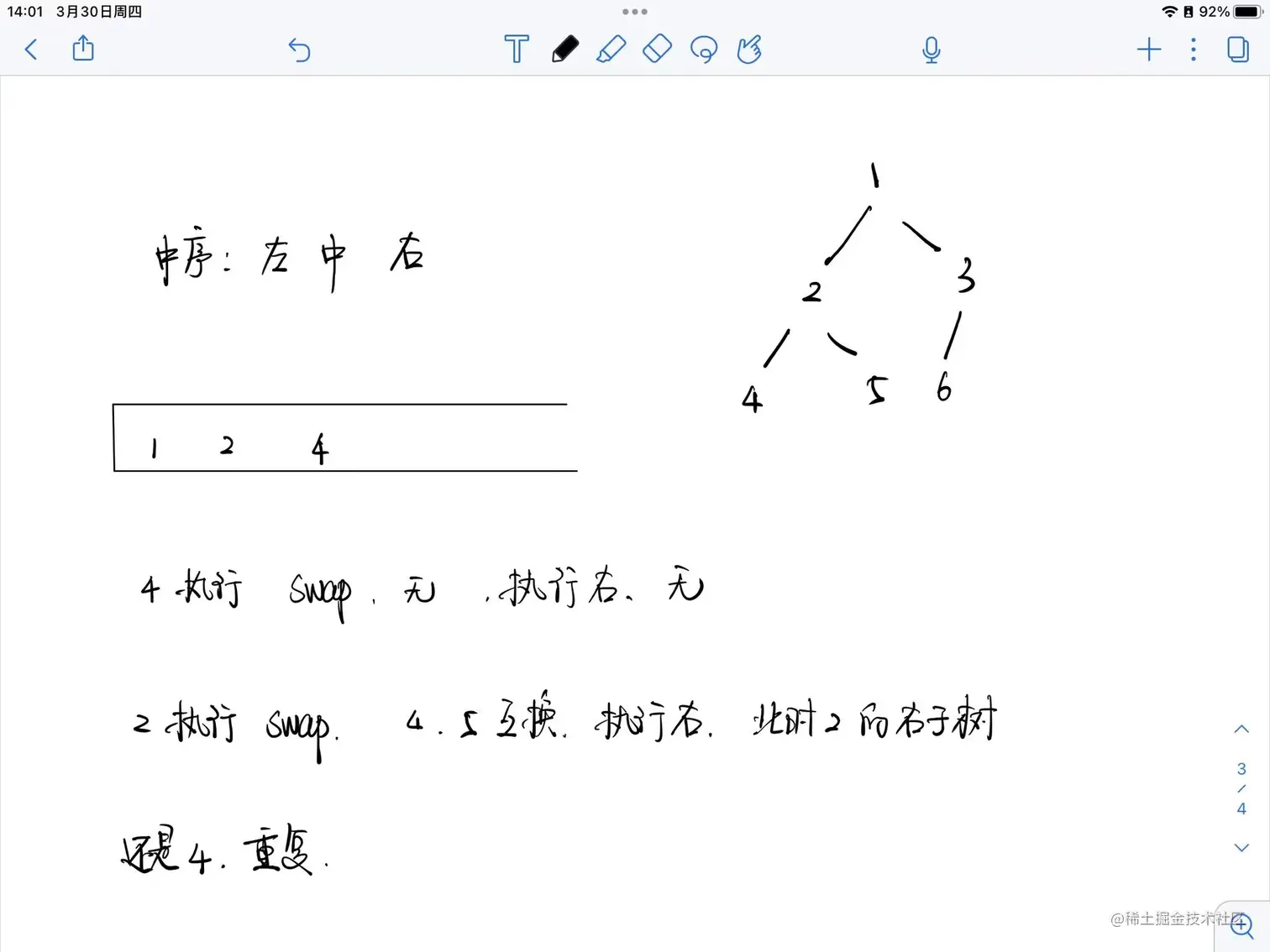 这里中的逻辑是把其左右子节点互换位置,所以中只能在两边而不能在中间