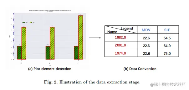 在本文中,作者通过采用最先进的计算机视觉技术,在数据挖掘系统的数据提取阶段,填补了研究的空白。如图1所示,该阶段包含两个子任务,即绘制元素检测和数据转换。为了建立一个鲁棒的Box detector,作者综合比较了不同的基于深度学习的方法,并找到了一种合适的高精度的边框检测方法。为了建立鲁棒point detector,采用了带有特征融合模块的全卷积网络,与传统方法相比,可以区分近点。该系统可以有效地处理各种图表数据,而不需要做出启发式的假设。在数据转换方面,作者将检测到的元素转换为具有语义值的数据。提出了一种网络来测量图例匹配阶段图例和检测元素之间的特征相似性。此外,作者还提供了一个关于从信息图表中获取原始表格的baseline,并发现了一些关键的因素来提高各个阶段的性能。实验结果证明了该系统的有效性。