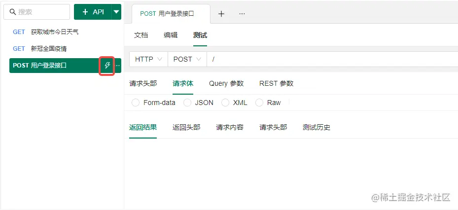 还可以通过点击分组 API 的闪电图标快速对某个 API 发起测试。