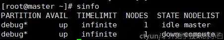 如果在master节点执行sinfo,出现如下输出: