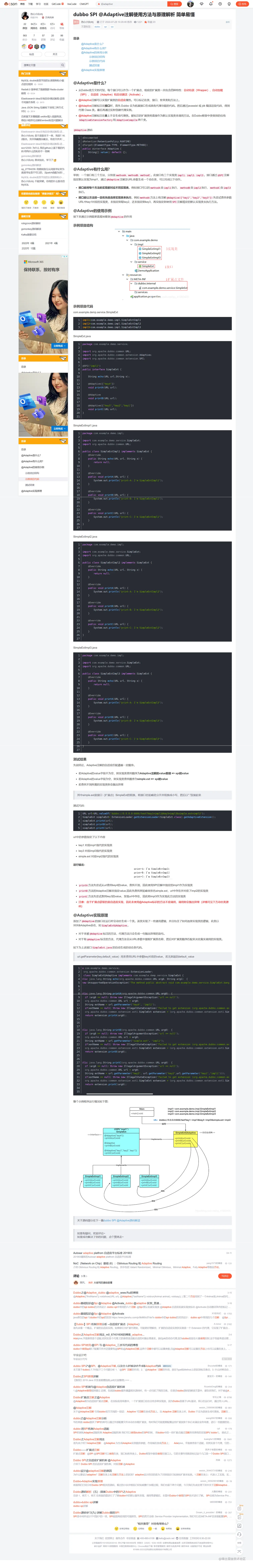在 Dubbo SPI 中,使用 @Adaptive 注解,可以动态地通过 URL 中的参数来确定要使用哪个具体的实现类。从而解决自动加载中的实例注入问题。©Adaptive 注解使用示例。