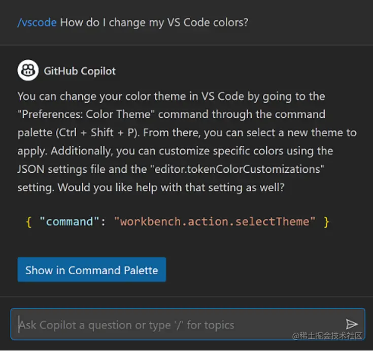 可以要求 Copilot 查找错误、解释棘手的代码、创建测试,甚至询问有关 VS Code 的问题。