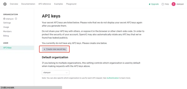 点击Create new secret key