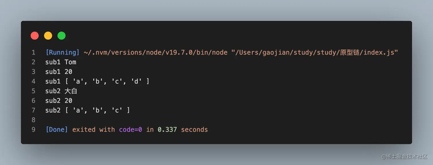 Sub的原型对象上添加getAge方法,返回Sub中的age属性 - 最后,我们实例化两个Sub构造函数的实例,测试继承下来的方法