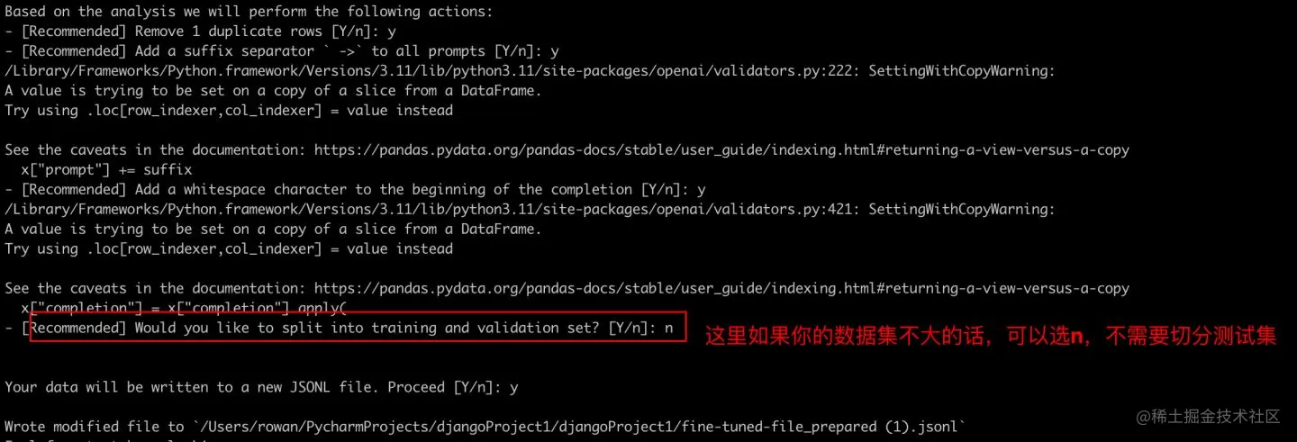 运行上述命令是系统所有的提示都选Y即可,纬度是否切分训练集好测试集是可以选n。