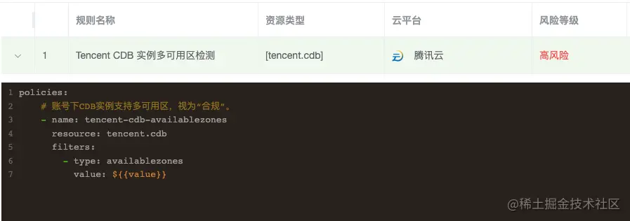 | 规则内容 | 具体执行检测的规则内容,详细信息请查看开发手册中的“如何自定义云资源检测规则” |