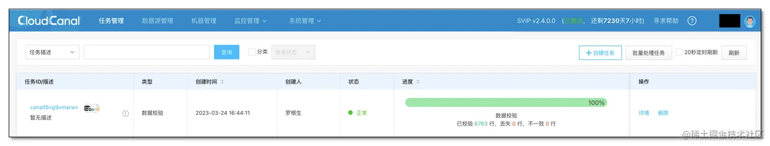 增量阶段进行数据写入后,进行数据校验,数据校验通过