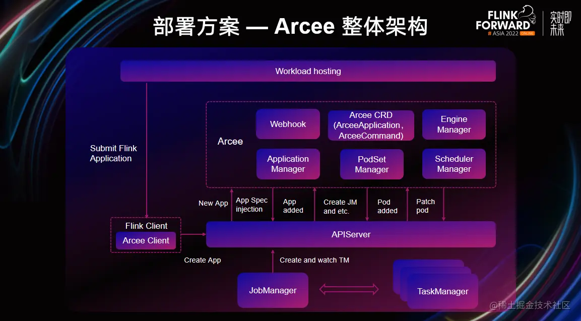 - 负责拉起 Jobmanager 的 Deployment 变成了Arcee Application;