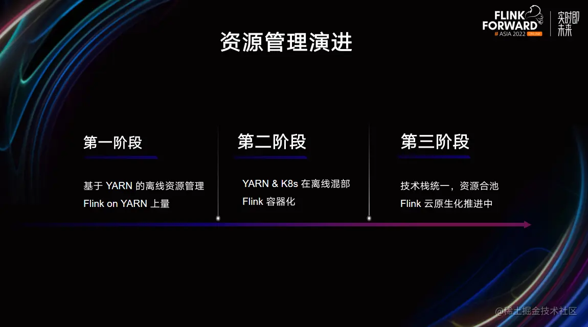 第三阶段,彻底的云原生化部署。在线负载和离线负载不再使用不同的架构进行管理,真正实现了技术栈统一和资源池统一,Flink 的云原生化也在逐步构建完善。
