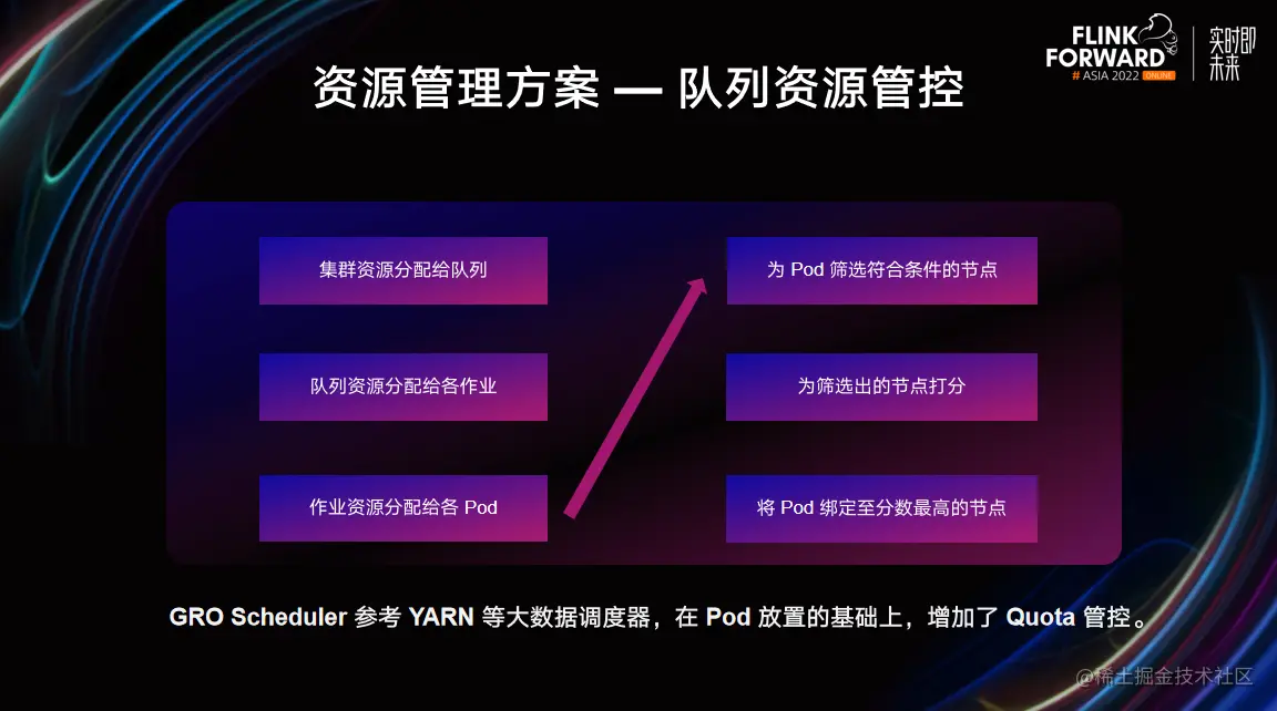 在问题介绍部分提到了 Flink 负载的两个特点—— Pod 创建时间不确定、所需资源量不确定。在这两个特点下,调度器是最适合做租户管控的组件。