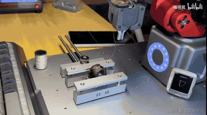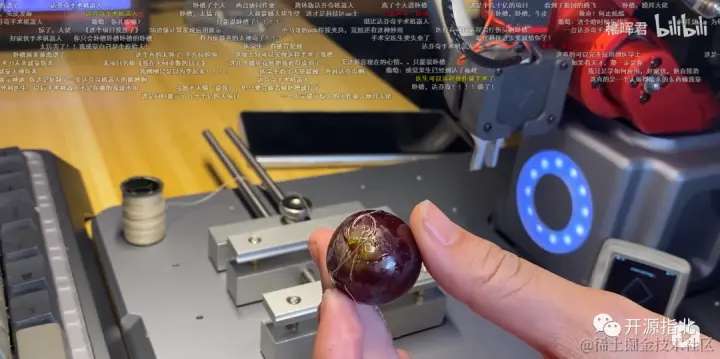最后的终极展示,就是稚晖君利用机械臂的实时性 来实现 手缝葡萄的经典画面了。