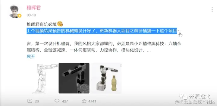 其实关于这次的主角机械臂 就连稚晖君本人也说 已经酝酿了好久好久