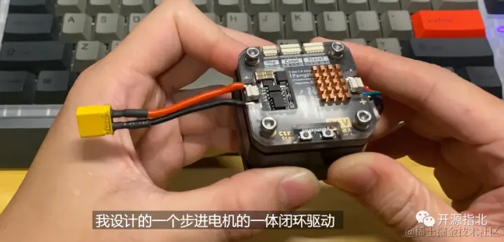 搞定了最基本的电机部分 后面就是驱动器——为了保证驱动精度和体积最小化 稚晖君 自己设计了一个步进电机的一体闭环驱动装置。