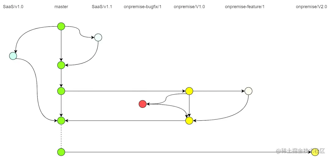 私有化发布周期内单独创建对应版本的私有化分支,发布完成后向 master 分支合并。这样保证了 master 分支在任何情况下都应当能同时在 SaaS 环境和私有化环境中正常工作。