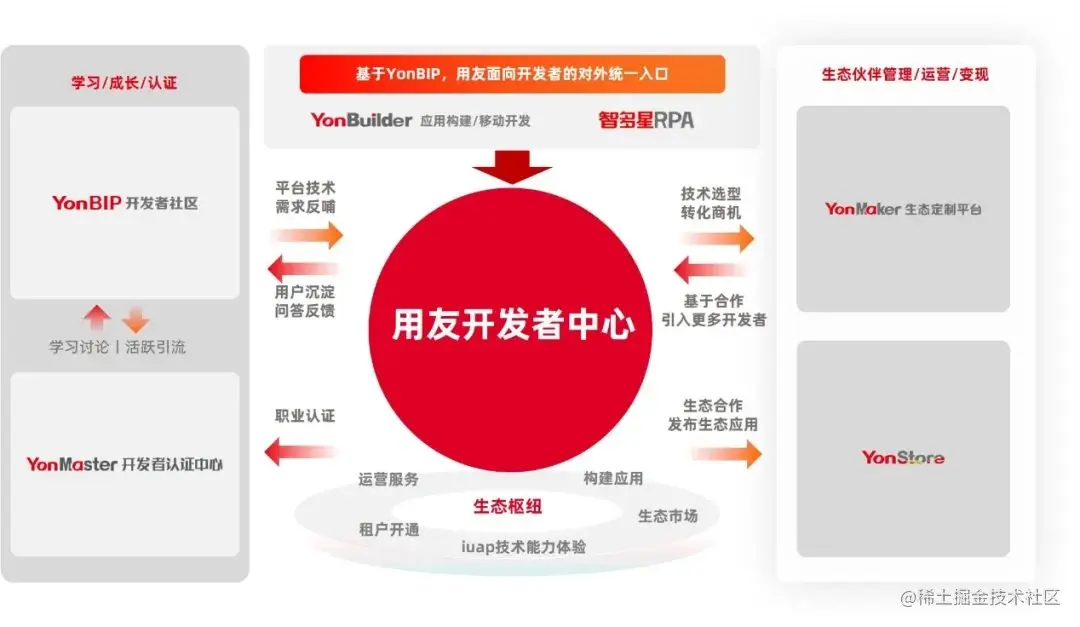 目前,用友通过全新升级后的 “用友开发者中心” 向社会化开发者、生态伙伴等提供 YonBuilder 低代码开发能力。