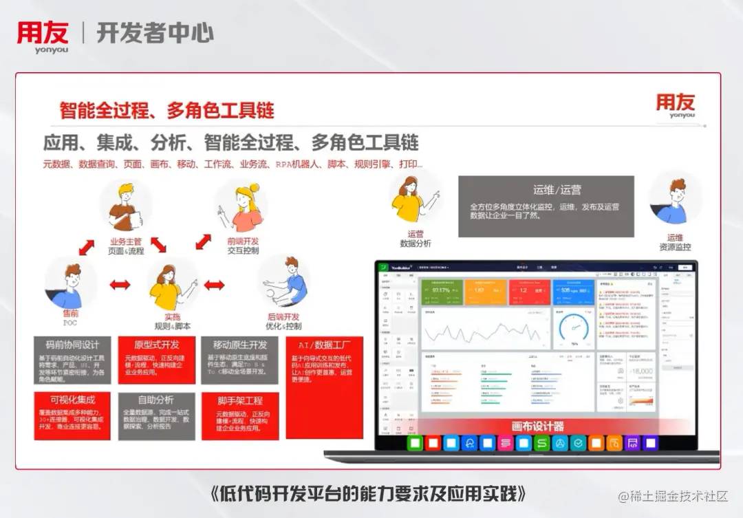 在用友看来,现阶段低代码应当能够形成对企业的数智化应用形成支撑,应用开发、数据和智能、连接集成等方面都是 “必修课”。